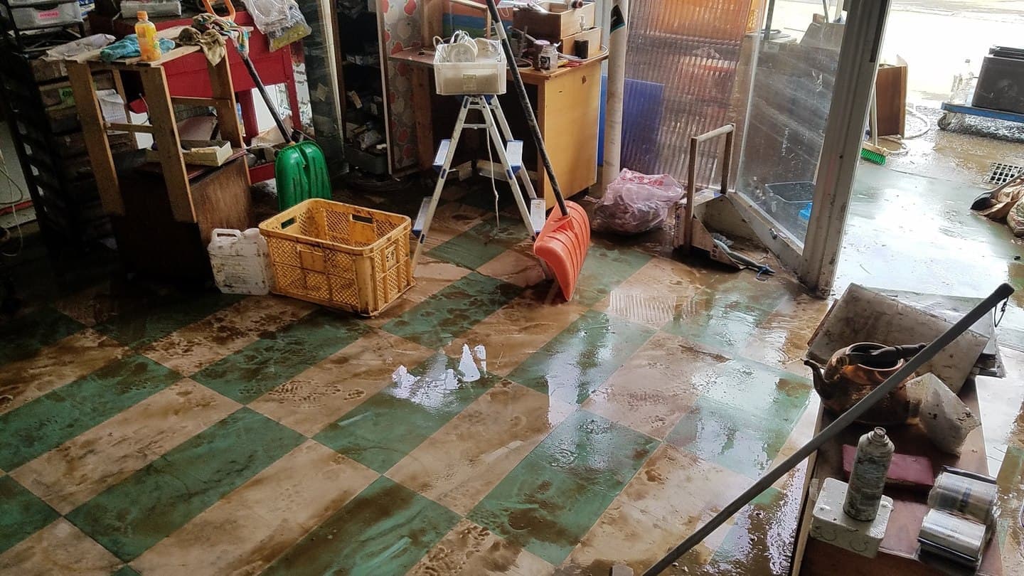 河川堤防決壊に伴い店内1.8m水没してしまいました